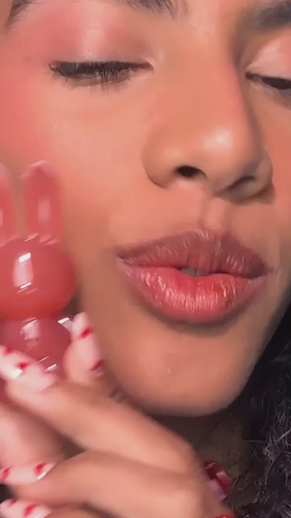 Click, glide, plump. BUN BUN LIP JELLY TINT’s jelly-like texture melts on contact, cocooning lips in a popsicle-stained tint with glass-like shine. Apply the perfect dose of sheer, buildable color in just one click, enhancing your natural lip tone with a dewy wash of plumping pigment. Menthol and coconut water create a cooling, pillowy pout, while moisturizing ceramides and smoothing Damask rose flower water volumize and hydrate for a juicy finish in five buildable shades.